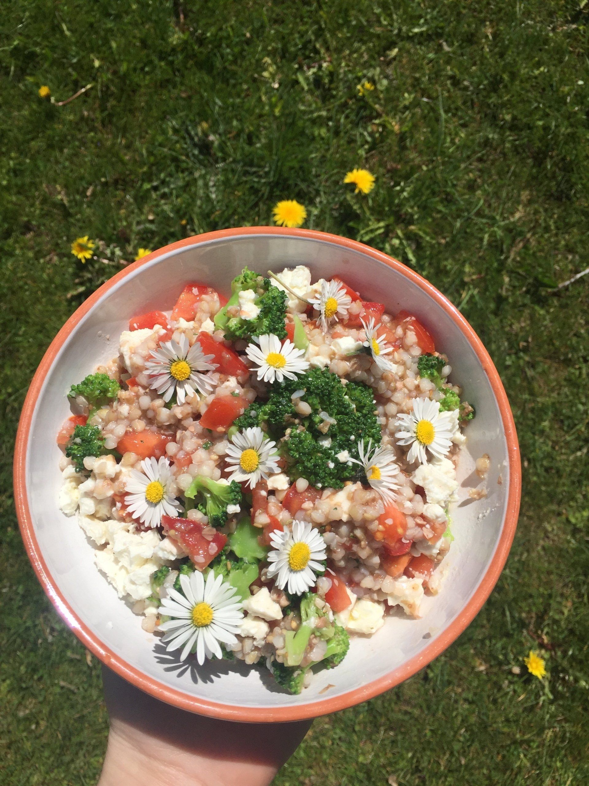 sonnenbadend, eisbadend, suppend, joggend, bei